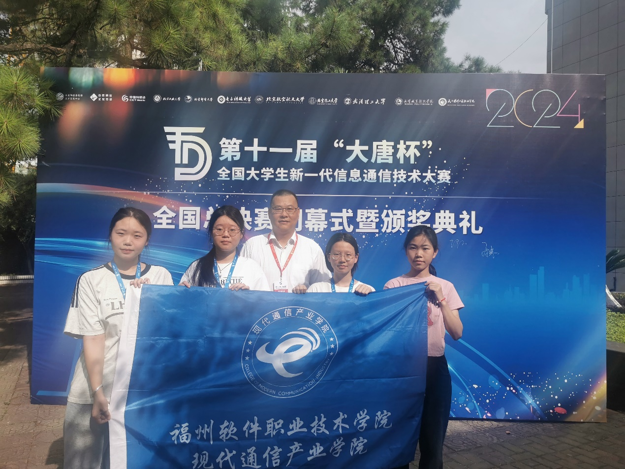 2024年7月10-14日,第十一届“大唐杯”全国大学生新一代信息通信技术大赛全国总决赛在武汉职业技术学院举行。现代通信产业学院参赛师生凭借扎实的专业知识、卓越的实践能力和团队协作精神,经过激烈比拼,在全国总决赛中荣获佳绩。其中,由陈竦副院长指导的一队陈佳丽、王秋雨同学获高职组一等奖;由郭亚超指导的二队陈丹、谢迎迎荣获高职组三等奖;