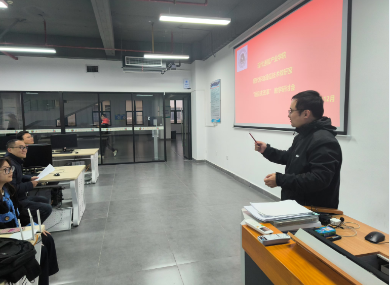 2024年12月23日下午15:00,我校现代通信产业学院于教学楼A205教室举办现代移动通信技术教研室项目式教学改革研讨会。现代移动通信技术教研室的全体成员悉数出席,并展开了一场别开生面的经验交流。此次会议特邀现代通信产业学院学院教学主管陈新老师及学院网络规划与优化技术教研室负责人郭亚超老师,两位老师带来精彩纷呈的分享发言。
