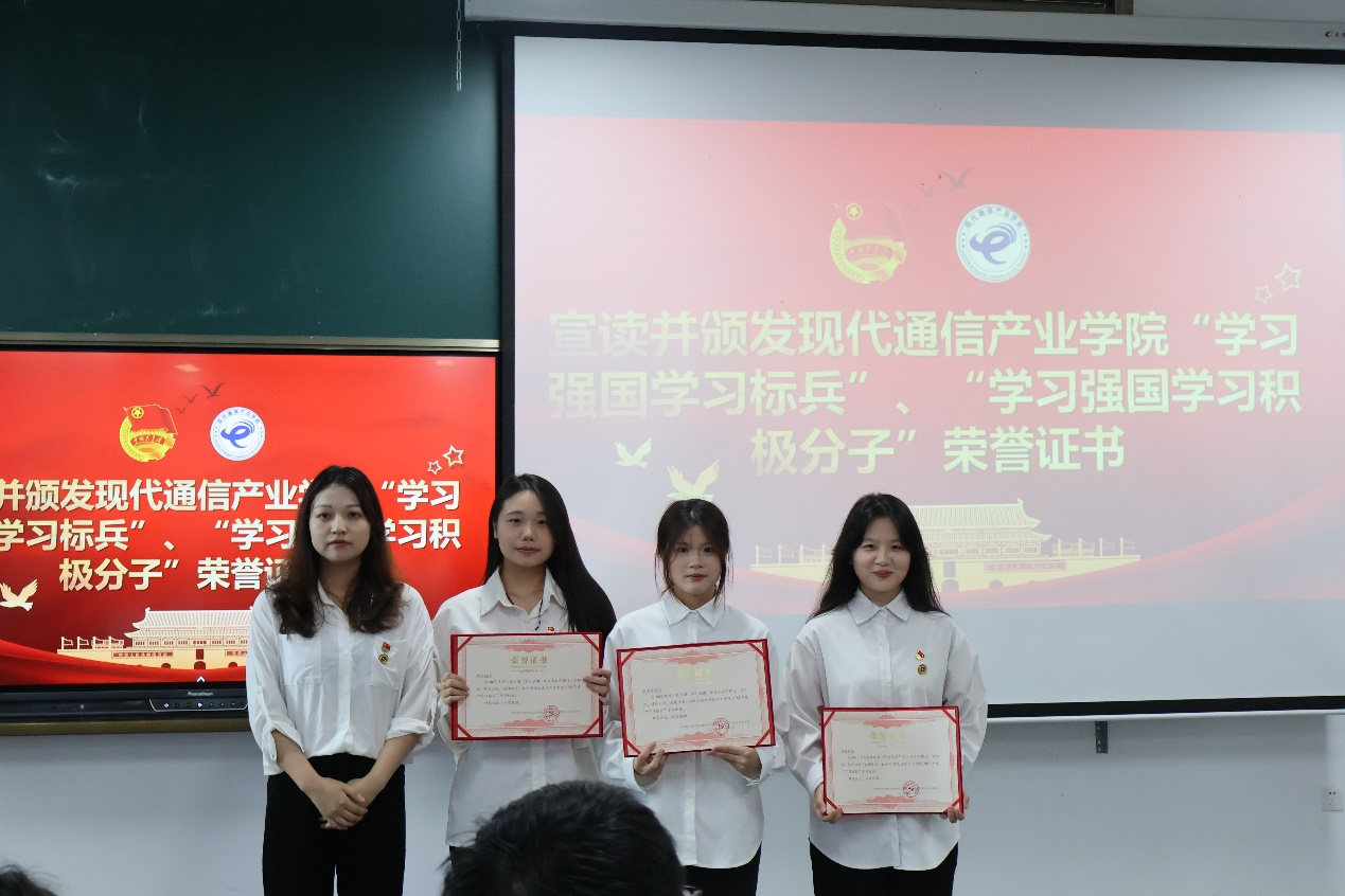 本次所受表彰的同学们表示,将珍惜荣誉、再接再厉,发挥模范带头作用,深入学习理论知识,争做有理想、敢担当、能吃苦、肯奋斗的新时代好青年。下一步,现代通信产业学院持续把“学习强国”平台作为学习贯彻习近平新时代中国特色社会主义思想的重要抓手,不断强化思想理论武装,增长能力才干,为建设中国特色社会主义现代化强国贡献力量。