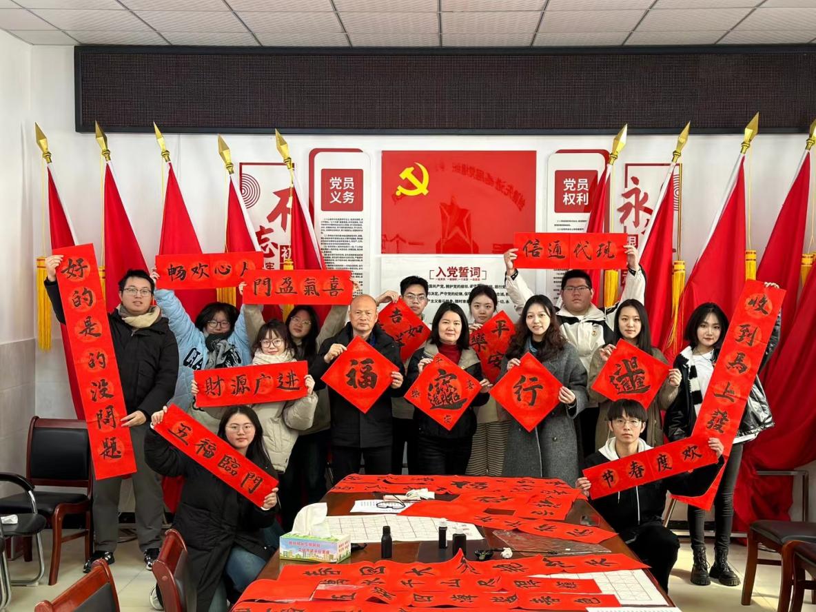 签约仪式后,现代通信产业学院师生与首峰村党员干部们开展了一场别开生面的书写春联送祝福的主题党日活动,大家齐聚一堂,舞文弄墨,书写春联,为即将到来的新年增添了浓厚的文化氛围。