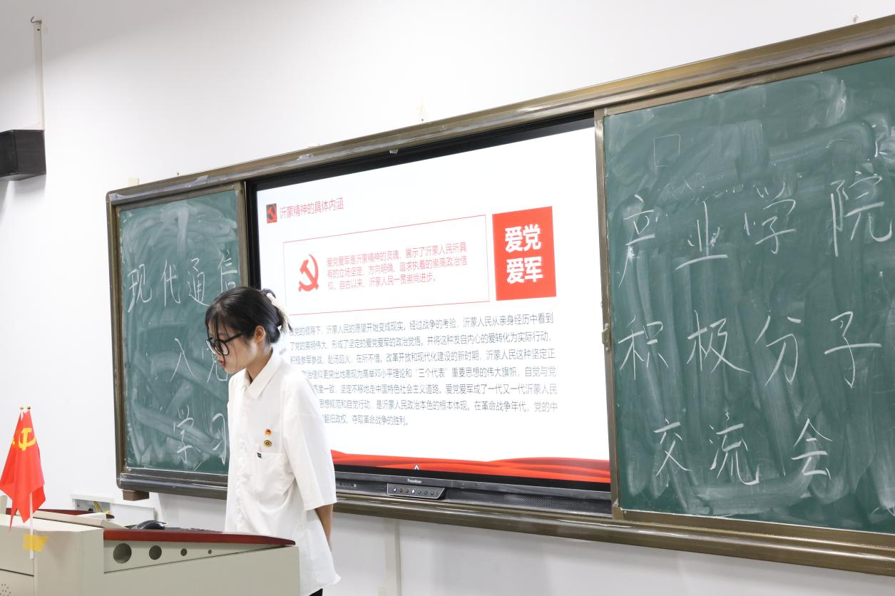 为进一步深化党史学习教育,6月1日晚20时20分,现代通信产业学院学生党支部在教学楼A611开展入党积极分子分享交流会之“沂蒙精神”主题学习会活动,现代移动通信技术1班潘楚苗同学为本期学习会主讲人,全体入党积极分子参与本次学习会。