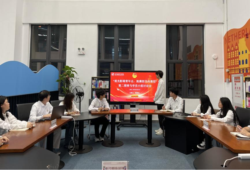 在图书馆内,现代通信产业学院青马班小组组长程俊杰同学组织召开了“观光影铸青年志,挺膺担当向基层”小组讨论会。会上,程俊杰同学向学员们深入解读了习近平总书记2025年五四青年节给新疆谢依特小学戍边支教志愿者的回信精神。回信中,习近平总书记高度赞扬了志愿者们扎根边疆、教书育人的担当精神,强调了支教事业对国家发展的深远价值,传递了“教育兴边”的重要理念。