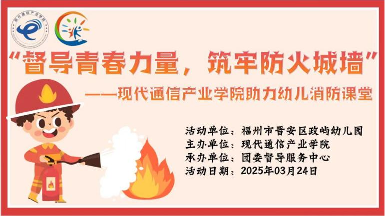 为进一步增强幼儿园小朋友的消防安全意识,提升应对火灾等突发事件的能力,2025年03月24日,现代通信产业学院的志愿者们走进了福州市晋安区政屿幼儿园,为小朋友们带来一堂消防知识课,用青春力量为幼儿园筑牢防火城墙。