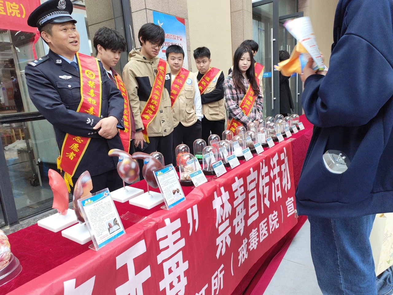 活动中,工作人员通过悬挂横幅、展示仿真吸毒后器官模型、毒品展示、派发“禁毒+普法”宣传折页等一系列方式,向广大学生用通俗易懂的语言讲解常见毒品的种类、特征、危害以及如何辨别和防范新型伪装毒品等方法。毒品是指鸦片、海洛因、甲基苯丙胺(冰毒)、吗啡、大麻、可卡因以及国家规定管制的其他能够使人形成瘾癖的麻醉药品和精神药品。毒品通常分为麻醉药品和精神药品两大类。其中最常见的主要是麻醉药品类中的大麻类、鸦片类和可卡因类。在当代社会,毒品拥有了很多新“外衣”,这些新的“外衣”具有非常强的迷惑性,因此,我们需要更加警惕新型毒品。