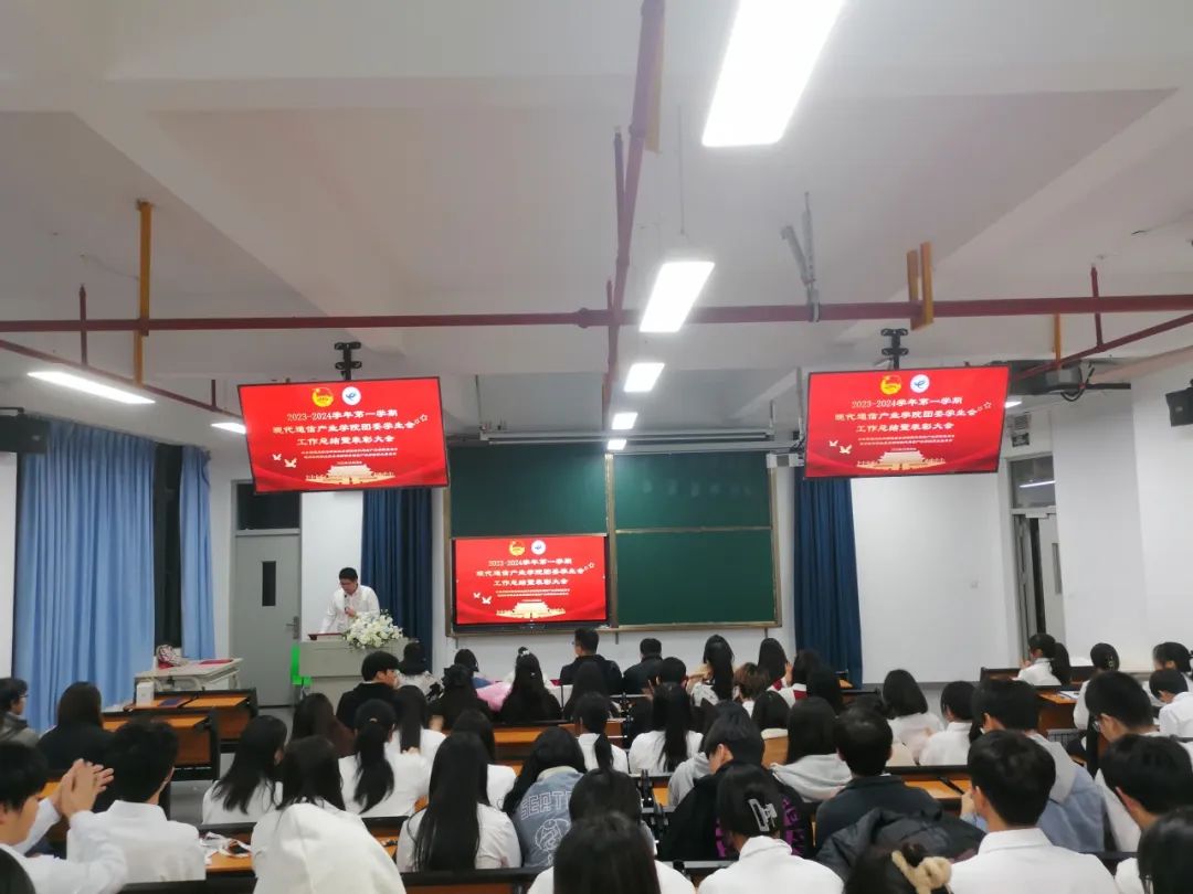 本次大会进行了团委学生会工作总结。他提到了本学期我们团委学生会所取得的成果,对各部门的工作进行了概括性的总结,并说出了接下来团委学生会发展的方向:在完成基础工作的同时,根据本院学生特点及所学专业,探索新的活动模式、活动方式,进一步提高大学生的实践能力与创新能力。随后宣读现代通信产业学院团委“优秀团支部”获奖名单并为他们颁奖,鼓励各团支部努力向他们看齐,积极投身学院团学工作。本次大会也对2023级新生班导以及团委学生会第一届新任学生干部、干事进行公示表彰,希望他们在以后的工作学习中依旧能保持热情,不忘初心,牢记使命。