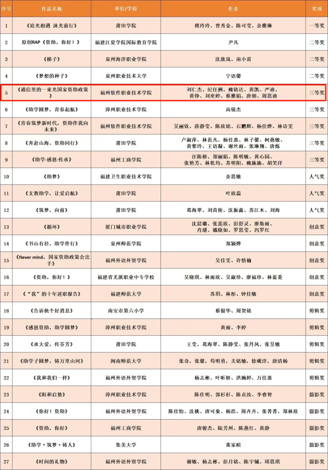 喜讯|现代通信产业学院荣获2023年福建省“资助,你好”主题微视频活动三等奖!