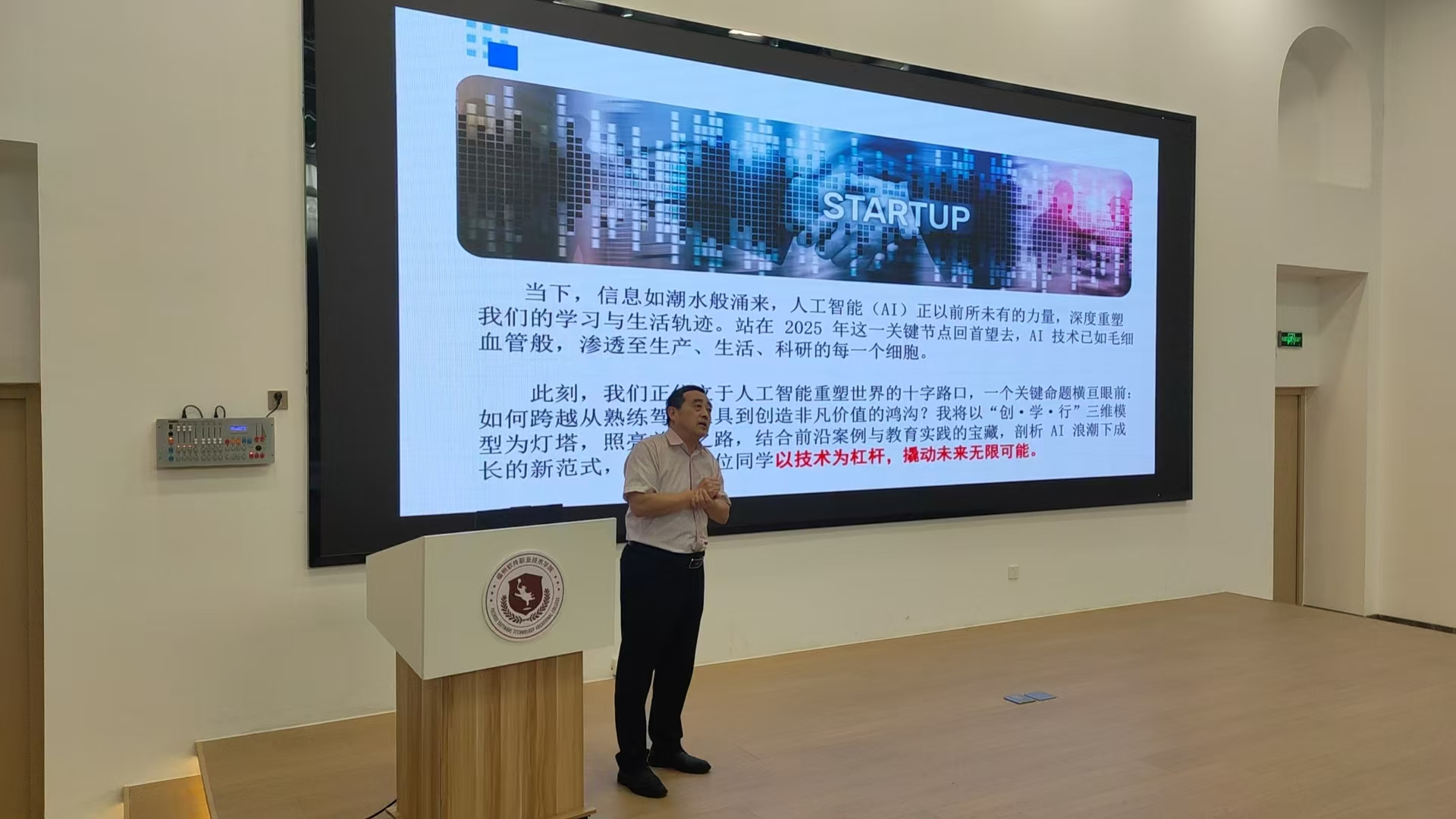 为深入落实学校 “五金建设” 方针,推动创新创业教育与职业教育改革深度融合,福州软件职业技术学院现代通信产业学院于 2025 年 5 月 14 日 14:30-16:30 在容艺报告厅举办 “从工具到价值:AI 浪潮下的‘创・学・行’成长新模式” 励学讲堂。本次活动作为学校励学讲堂体系的重要组成部分,聚焦 “金专、金课、金师、金地、金教材” 五位一体建设目标,吸引现代通信产业学院 2024 级学生参与。